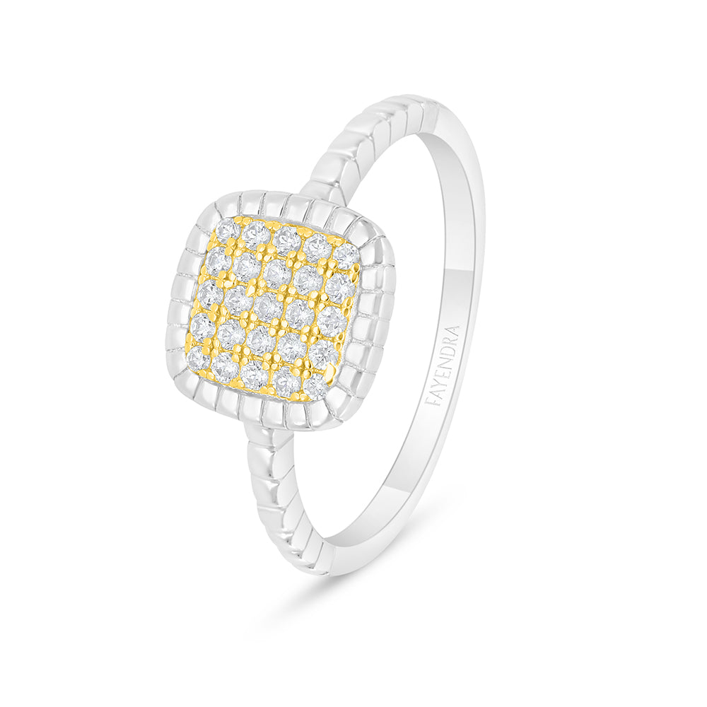 Total Weight: 1.9g عززي من جمال أناملك مع هذا الخاتم المميز من فايندرا. مصاغ من الفضة الإسترلينية الخالصة عيار 925، ومطلي بطبقة حماية من الروديوم واللون الذهبي الخلاب. حيث يتميّز بتصميم بسيط وأنيق على شكل مربع بأطراف مجدولة، تتوسّطه تشكيلة رائعة من أحجار الزركون الأبيض الفاخرة. قطعة مثالية للمناسبات الخاصة، تجمع بين الأناقة الهادئة والبريق اللافت. لا تترددي أضيفيه إلى سلة مشترياتك الآن!
