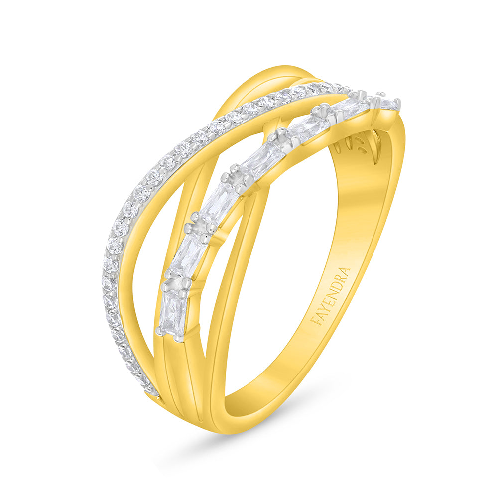 خاتم من الفضة الخالصة عيار 925 مطلي روديوم و ذهبي مرصع فص ابيض