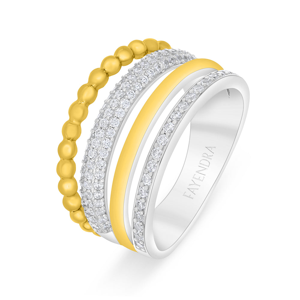 خاتم من الفضة الخالصة عيار 925 مطلي روديوم و ذهبي مرصع فص ابيض