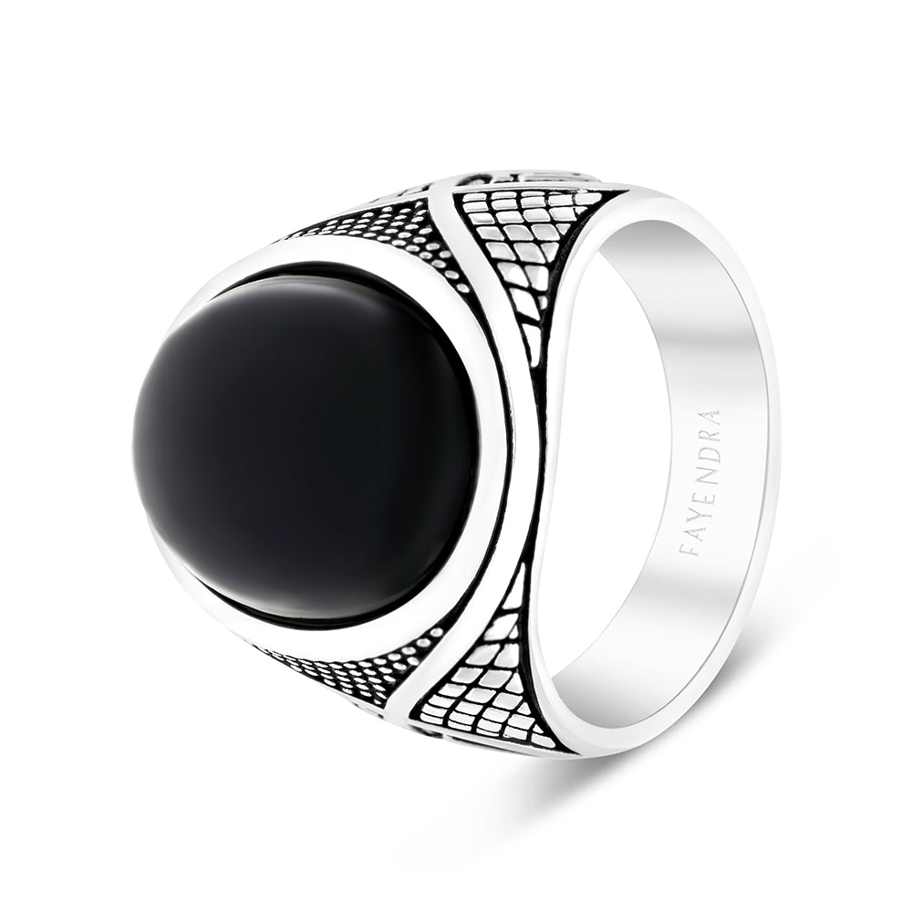 خاتم رجالي فضة عيار 925 مطلي روديوم احجار اونكس طبيعي LOGO