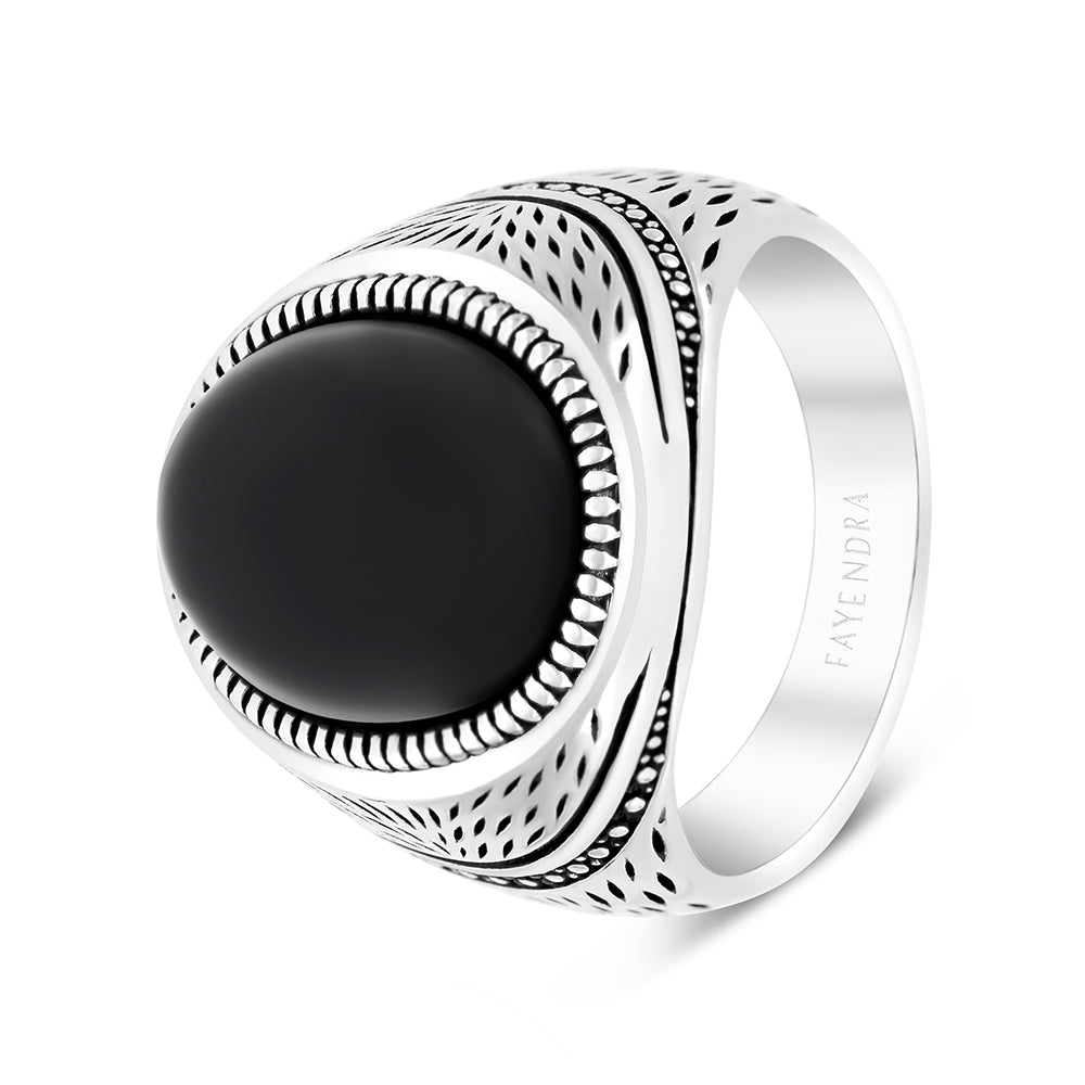 خاتم رجالي فضة عيار 925 مطلي روديوم احجار اونكس طبيعي