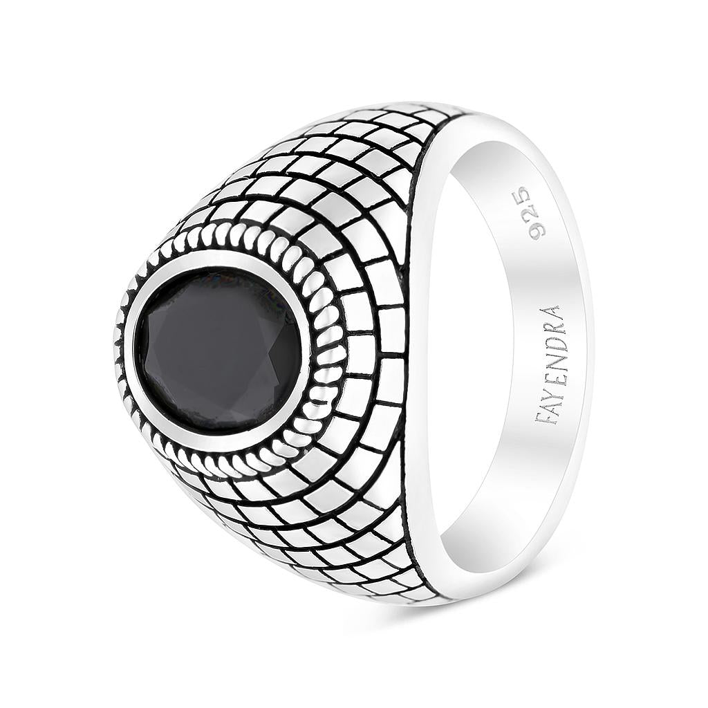 خاتم رجالي فضة عيار 925 مطلي روديوم احجار اونكس سبينل