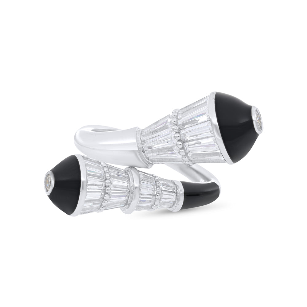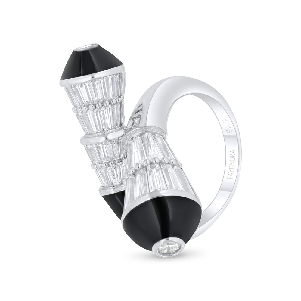 خاتم من الفضة الخالصة عيار 925 مطلي روديوم مرصع انميل اسود و فص ابيض