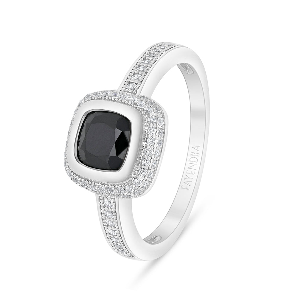 خاتم من الفضة الخالصة عيار 925 مطلي روديوم مرصع احجار اونكس سبينل و فص ابيض