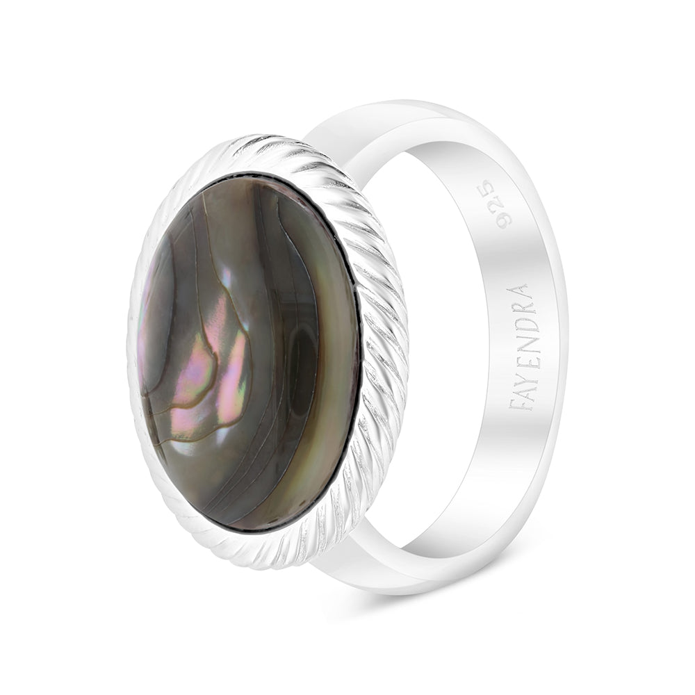 خاتم رجالي فضة عيار 925 مطلي روديوم مرصع احجار صدف استرالي