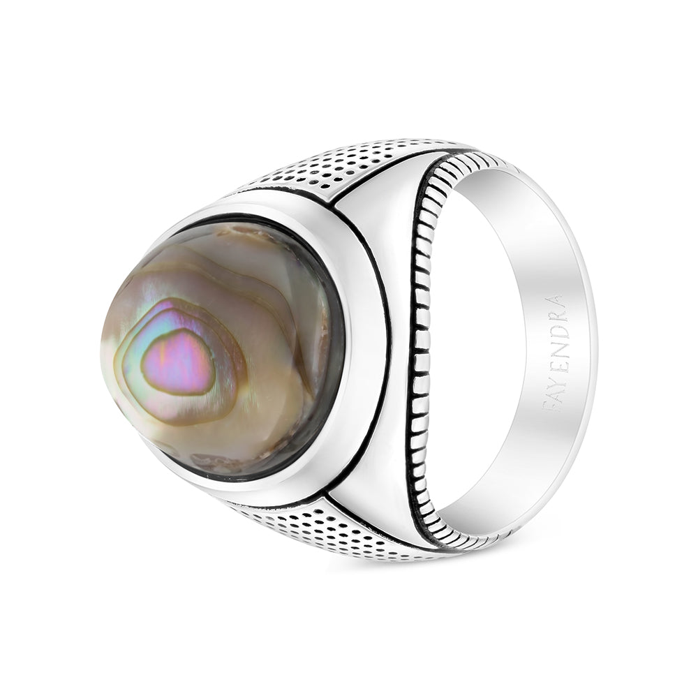خاتم رجالي فضة عيار 925 مطلي روديوم مرصع احجار صدف استرالي