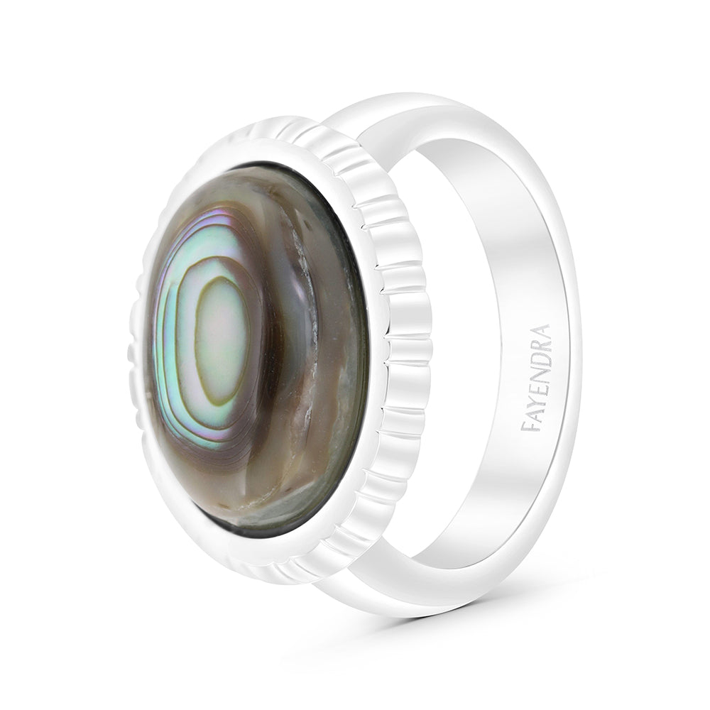 خاتم رجالي فضة عيار 925 مطلي روديوم مرصع احجار صدف استرالي
