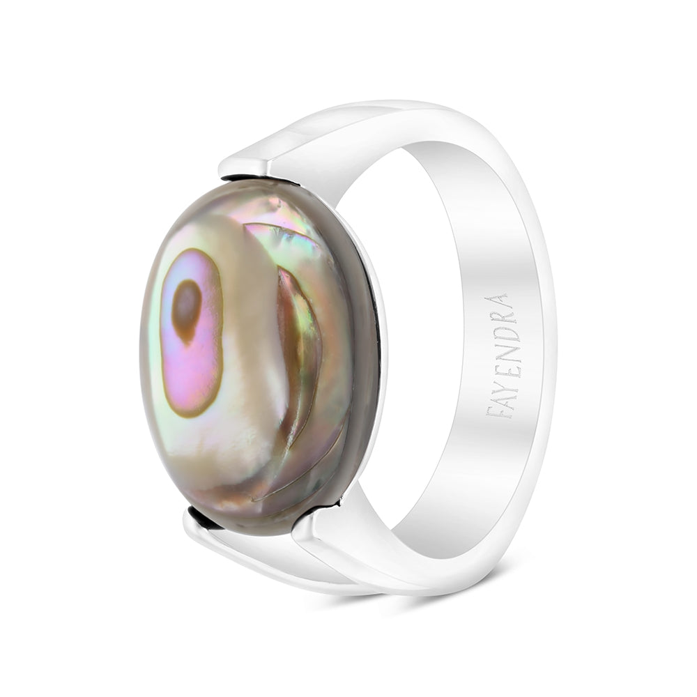 خاتم رجالي فضة عيار 925 مطلي روديوم مرصع احجار صدف استرالي