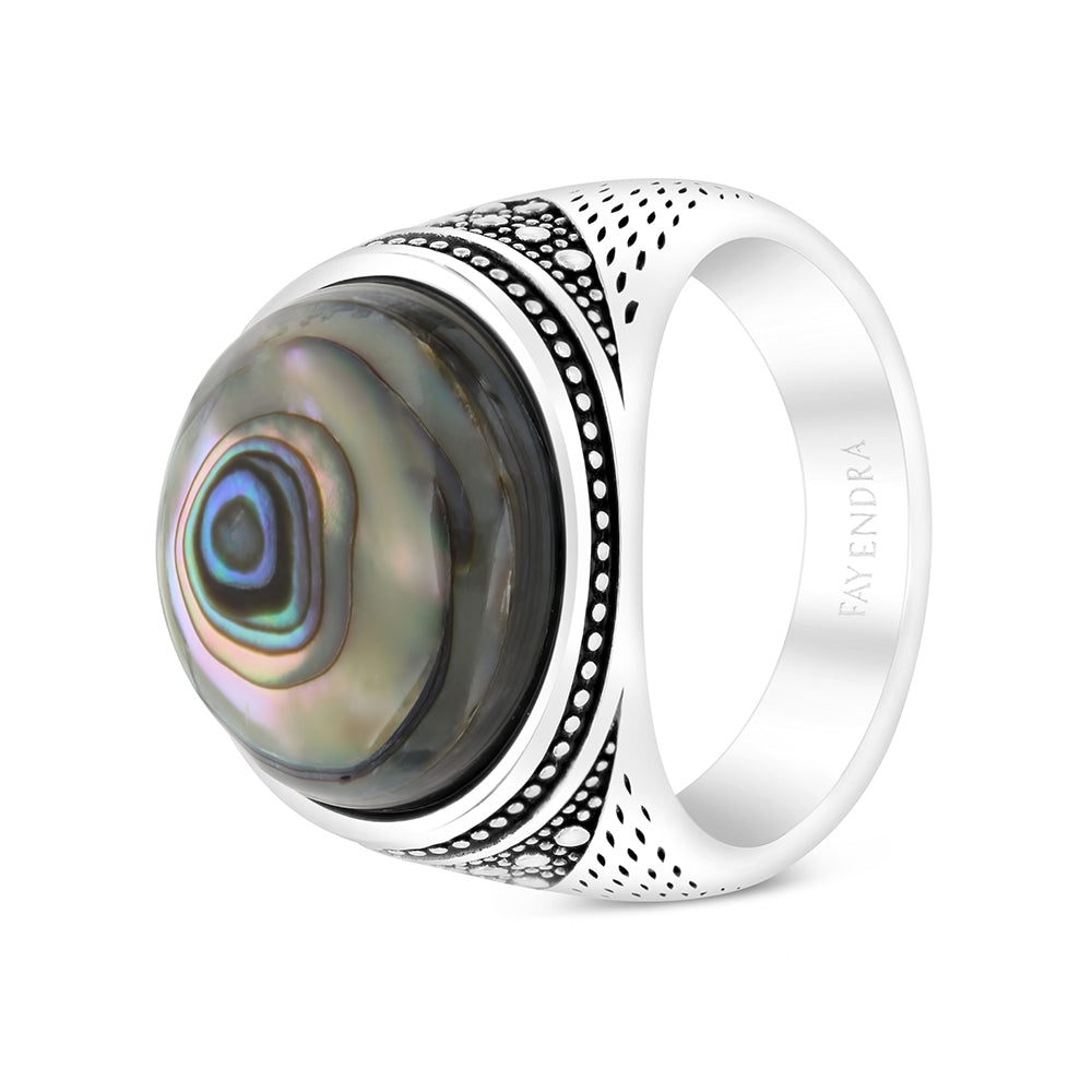 خاتم رجالي فضة عيار 925 مطلي روديوم مرصع احجار صدف استرالي