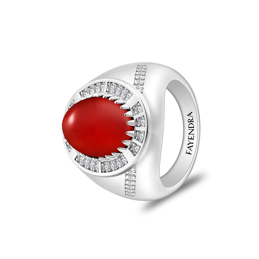 خاتم رجالي من الفضة الخالصة عيار 925 مطلي روديوم مرصع احجار عقيق احمر كابشون و فص ابيض