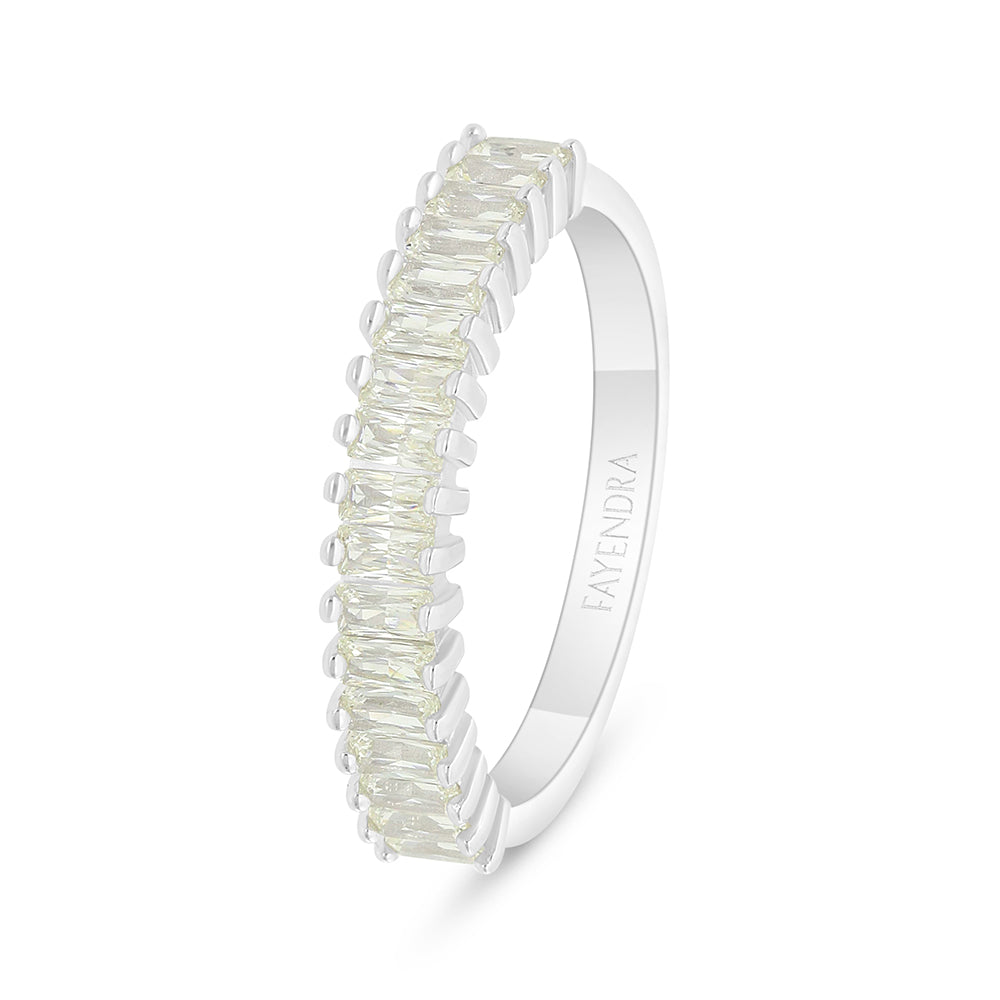 Total Weight: 2.5g اجعلي من كل إطلالة لكِ لمسة فريدة لا تُنسى، وأثري مجموعتك من المجوهرات الراقية بهذا الخاتم الساحر. تم تصنيعه بعناية من فضة إسترلينية نقية عيار 925، ومطلي بطبقة من الروديوم لتمنحه بريقاً يدوم وحماية إضافية. يتميز الخاتم بتصميم أنيق مرصّع بمصفوفة استثنائية من أحجار الزركون الكناري، المقطوعة بدقة على شكل باغيت لامع، ما يضفي عليه لمسة من الفخامة والتفرّد. لا تفوتي فرصة اقتنائه، وأضيفيه إلى سلتك الآن!