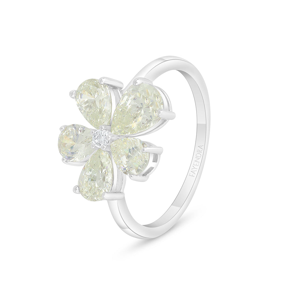 تمتعي بإطلالة عصرية مفعمة بالأناقة عند ارتداء هذا الخاتم، المصنوع من الفضة الخالصة عيار 925، مطلي بالروديوم للحفاظ على لمعانه لأطول فترة ممكنة. صُمّم الخاتم على شكل زهرة متفتحة، تتلألأ بتلاتها بأحجار زركون كناري ألماسي براقة مقطوعة بدقة على هيئة قطرات نقية. نسقيه مع القطع المطابقة من نفس المجموعة لتنعمي بأناقة آسرة صباحًا ومساءً. اقتنيه الآن ودعي تألقك يكتمل!