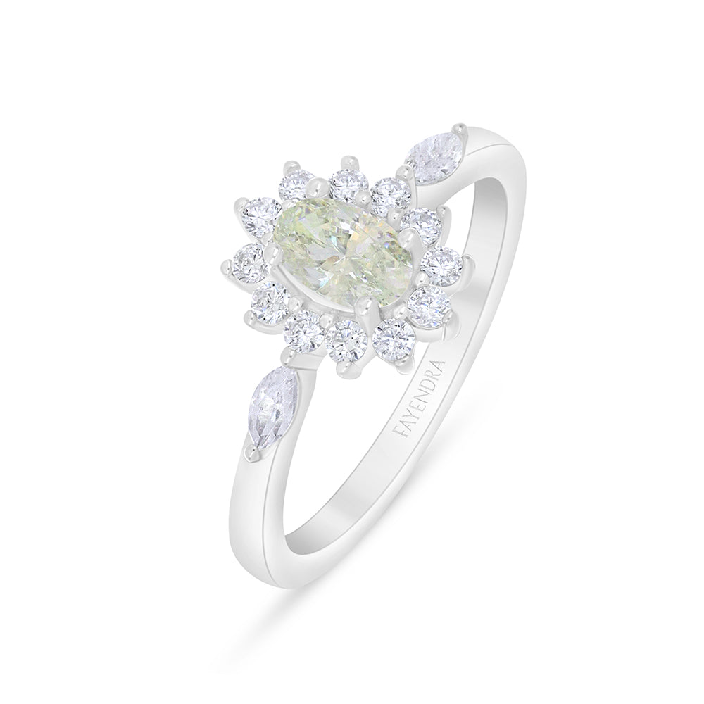خاتم من الفضة الخالصة عيار 925 مطلي روديوم مرصع بالزركون الكناري الالماسي و فص ابيض
