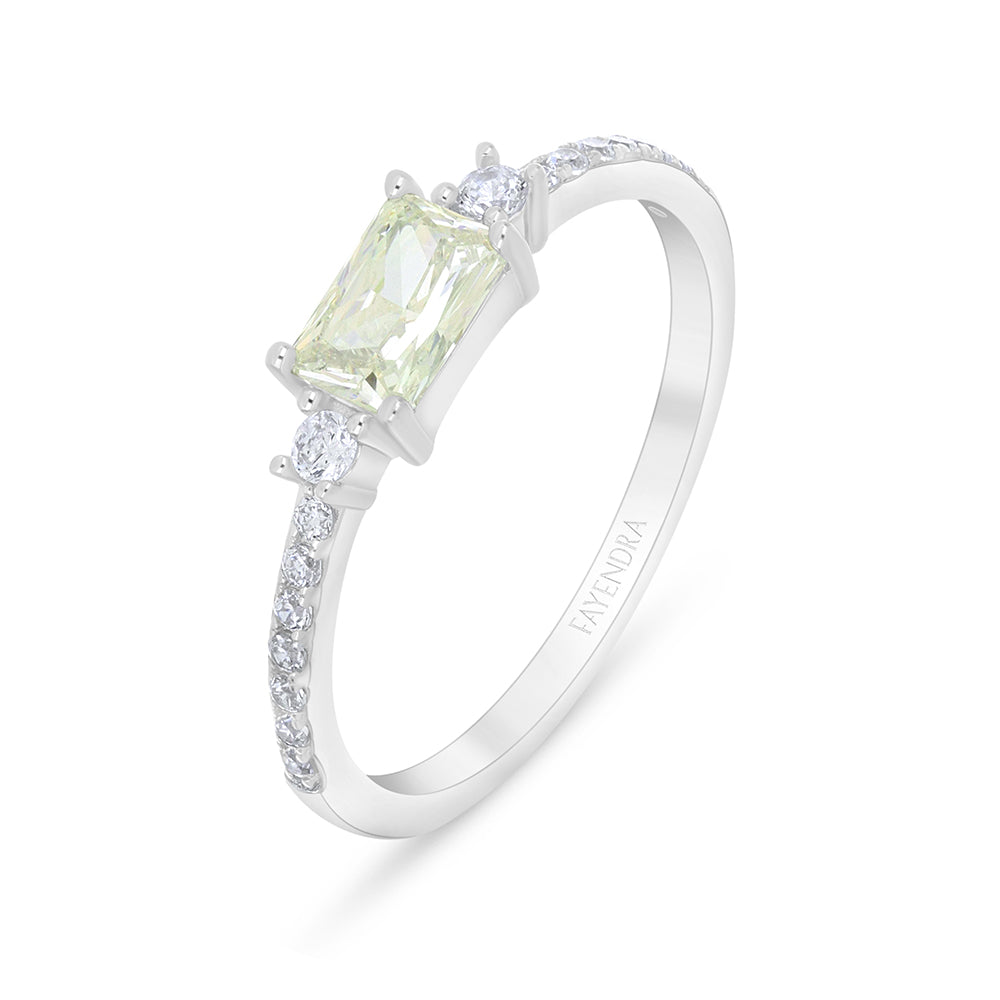 خاتم من الفضة الخالصة عيار 925 مطلي روديوم مرصع بالزركون الكناري الالماسي و فص ابيض