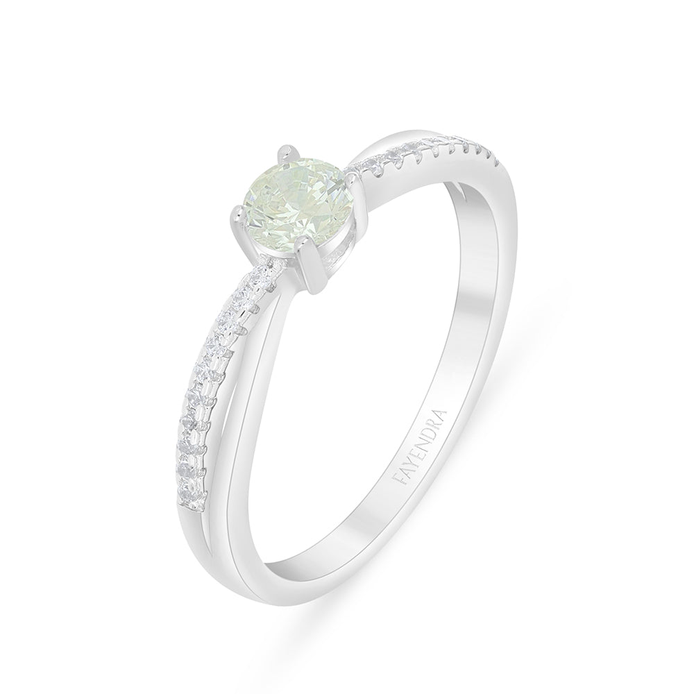 خاتم من الفضة الخالصة عيار 925 مطلي روديوم مرصع بالزركون الكناري الالماسي و فص ابيض