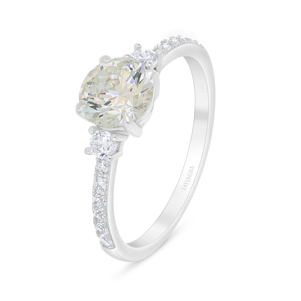 خاتم من الفضة الخالصة عيار 925 مطلي روديوم مرصع بالزركون الكناري الالماسي و فص ابيض