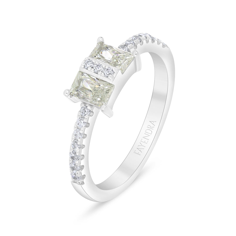 خاتم من الفضة الخالصة عيار 925 مطلي روديوم مرصع بالزركون الكناري الالماسي و فص ابيض