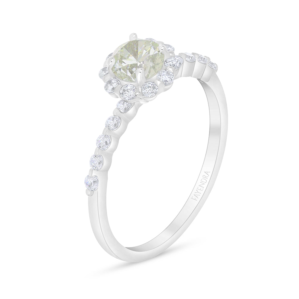خاتم من الفضة الخالصة عيار 925 مطلي روديوم مرصع بالزركون الكناري الالماسي و فص ابيض