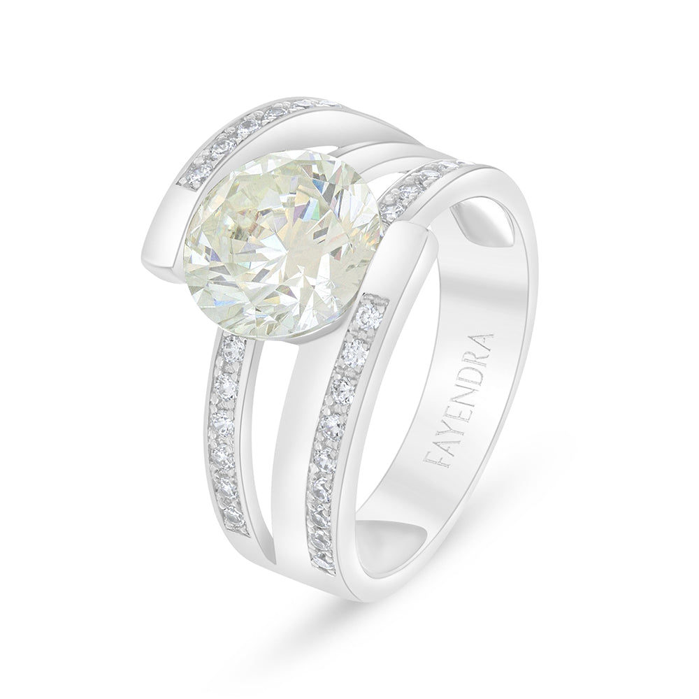 خاتم من الفضة الخالصة عيار 925 مطلي روديوم مرصع بالزركون الكناري الالماسي و فص ابيض