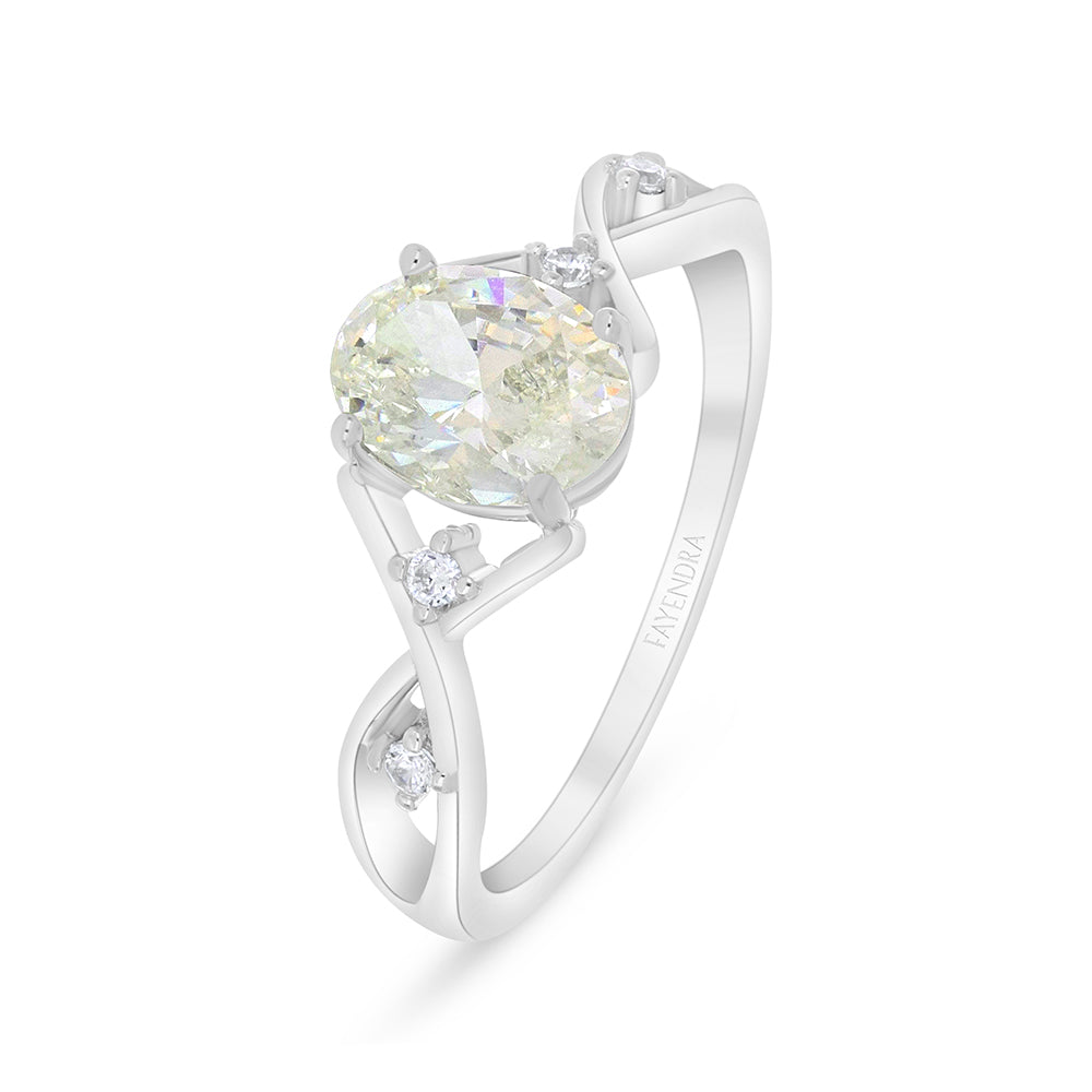 خاتم من الفضة الخالصة عيار 925 مطلي روديوم مرصع بالزركون الكناري الالماسي و فص ابيض