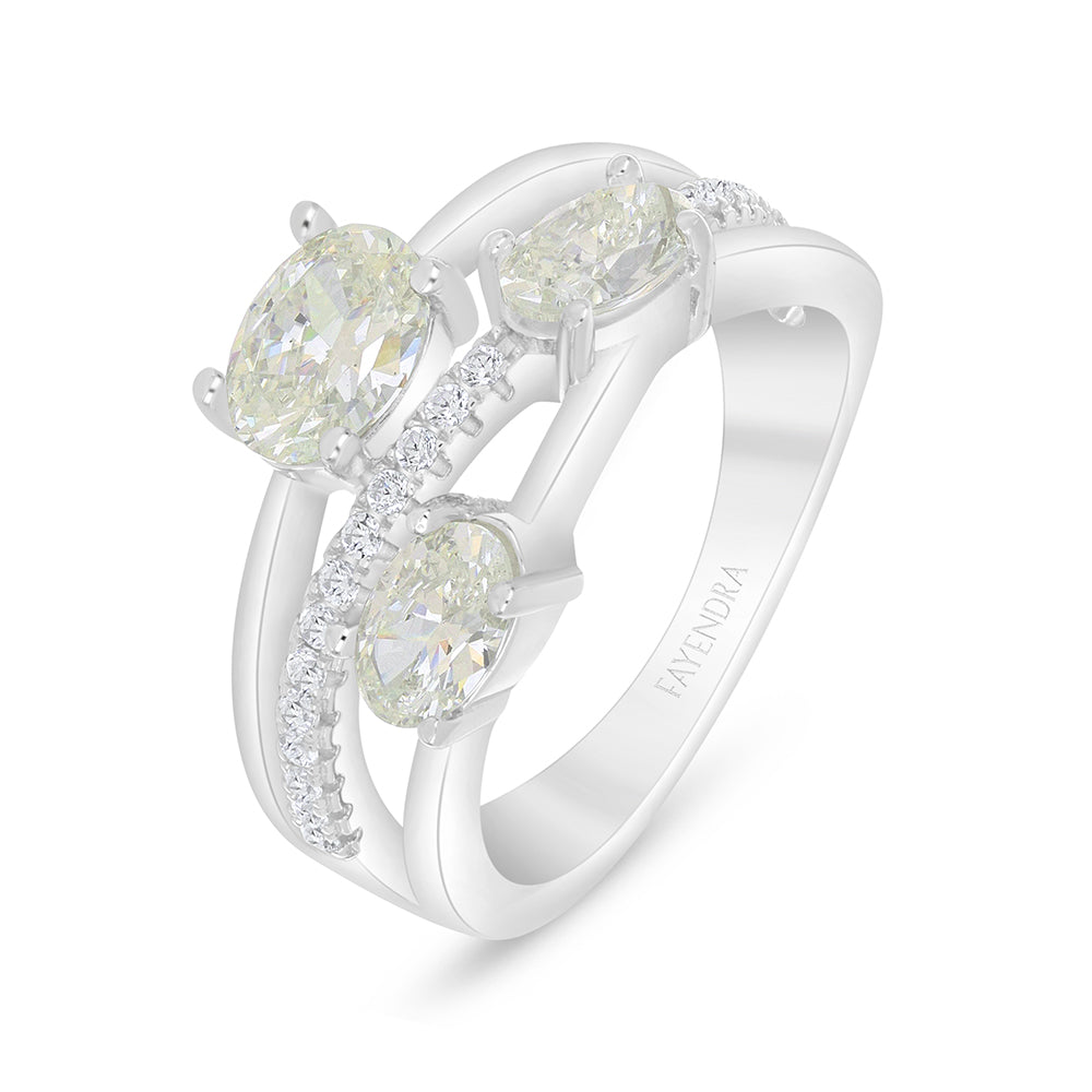 خاتم من الفضة الخالصة عيار 925 مطلي روديوم مرصع بالزركون الكناري الالماسي و فص ابيض