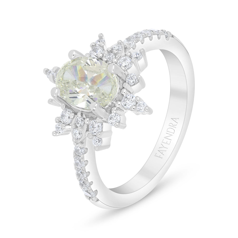 خاتم من الفضة الخالصة عيار 925 مطلي روديوم مرصع بالزركون الكناري الالماسي و فص ابيض