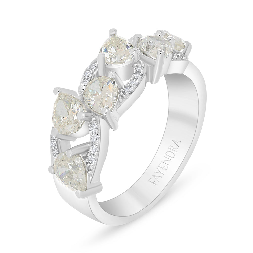 خاتم من الفضة الخالصة عيار 925 مطلي روديوم مرصع بالزركون الكناري الالماسي و فص ابيض