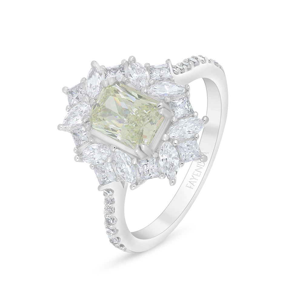خاتم من الفضة الخالصة عيار 925 مطلي روديوم مرصع بالزركون الكناري الالماسي و فص ابيض