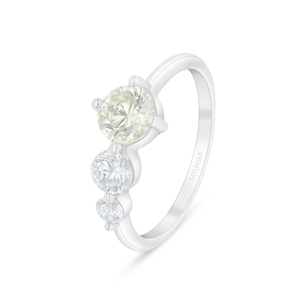 Total Weight: 2.1g أضيفي لمسة لونية متفردة إلى إطلالتك مع هذا الخاتم الفاخر المصاغ من الفضة الإسترلينية عيار 925، والمطلي بالروديوم للحفاظ على لمعانه وجماله. يتميز الخاتم بتصميم مفعم بالحيوية يضم ثلاث أحجار زركون براقة بألوان الأبيض والكناري الألماسي، ومُشكّلة بقطع بريليانت متدرج الأحجام ليمنحك إشراقة خاصة في كل يوم. اجعليه خيارك المميز الآن!