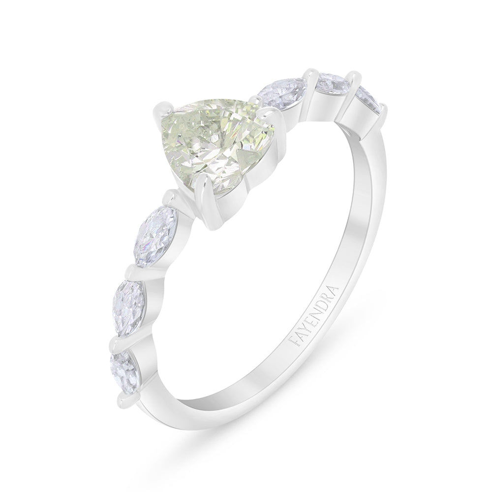 خاتم من الفضة الخالصة عيار 925 مطلي روديوم مرصع بالزركون الكناري الالماسي و فص ابيض