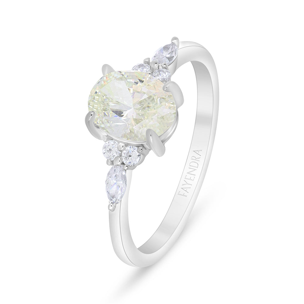 خاتم من الفضة الخالصة عيار 925 مطلي روديوم مرصع بالزركون الكناري الالماسي و فص ابيض