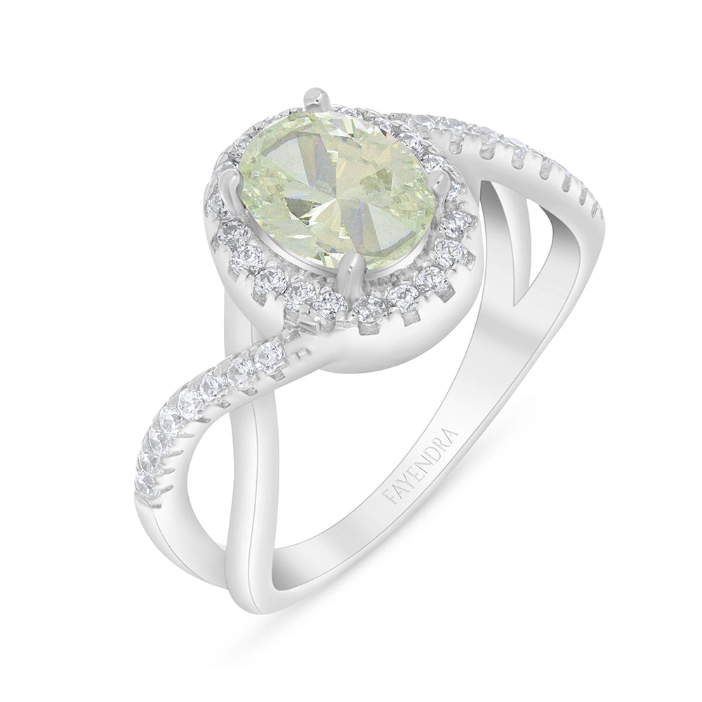 خاتم من الفضة الخالصة عيار 925 مطلي روديوم مرصع بالزركون الكناري الالماسي و فص ابيض