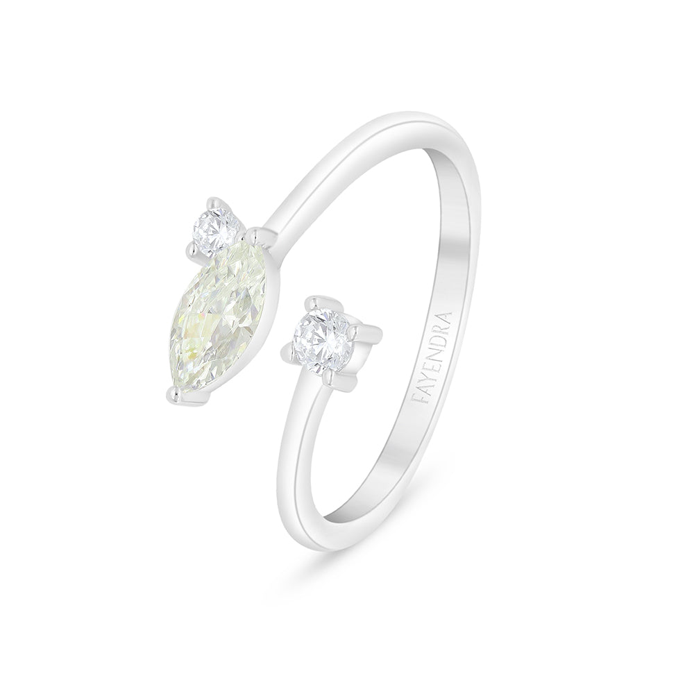 Total Weight: 2g تمتّعي بإطلالة فاتنة مع هذا الخاتم الرائع المصنوع من الفضة الخالصة عيار 925 والمطلي بطبقة من الروديوم للحماية، بتصميم إطار رفيع مفتوح بأسلوب مرن تتوّجه أحجار من الزركون المتلألئ الكناري الألماسي بقصّة ماركيز الأنيقة وزركون أبيض بقصّة بريليانت البراقة، ليمنح أناملك تناغماً لونياً فاخرًا يضفي عليها لمسة ساحرة من الإشراق. اضيفيه الى سلتك الان!