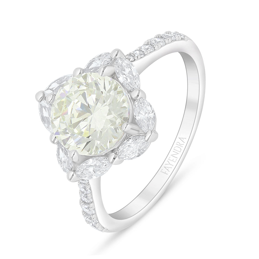 خاتم من الفضة الخالصة عيار 925 مطلي روديوم مرصع بالزركون الكناري الالماسي و فص ابيض