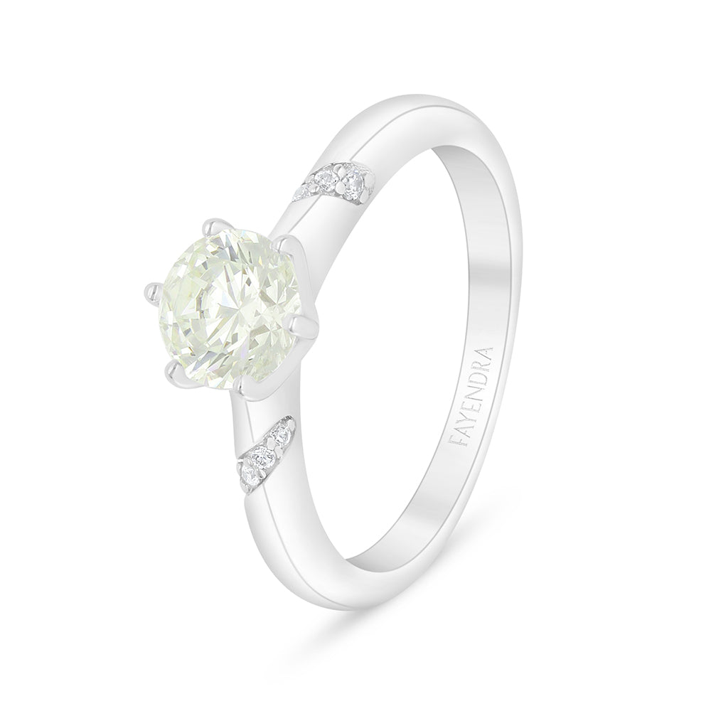خاتم من الفضة الخالصة عيار 925 مطلي روديوم مرصع بالزركون الكناري الالماسي و فص ابيض