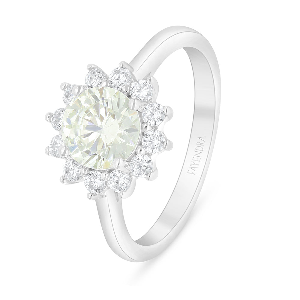 خاتم من الفضة الخالصة عيار 925 مطلي روديوم مرصع بالزركون الكناري الالماسي و فص ابيض