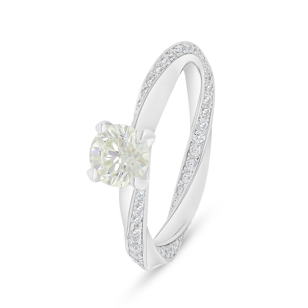 خاتم من الفضة الخالصة عيار 925 مطلي روديوم مرصع بالزركون الكناري الالماسي و فص ابيض