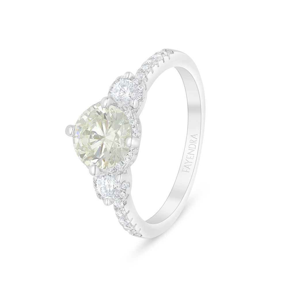 خاتم من الفضة الخالصة عيار 925 مطلي روديوم مرصع بالزركون الكناري الالماسي و فص ابيض