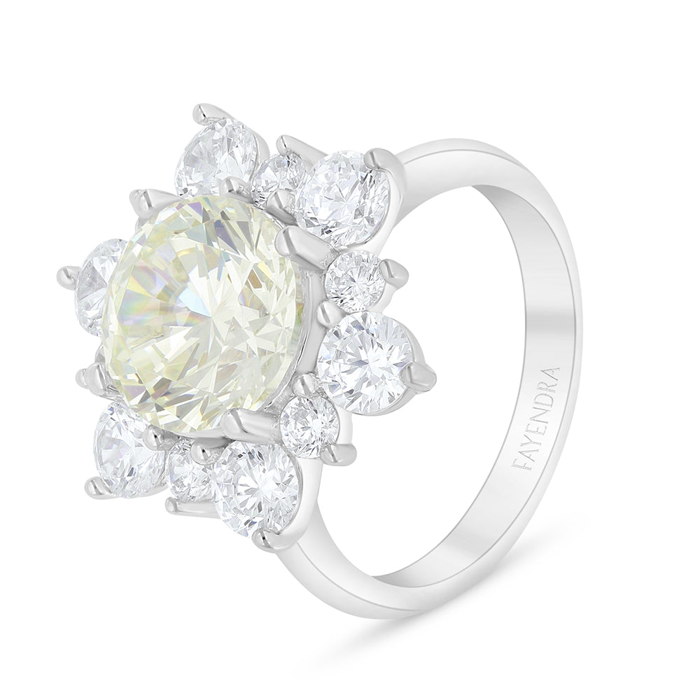 خاتم من الفضة الخالصة عيار 925 مطلي روديوم مرصع بالزركون الكناري الالماسي و فص ابيض