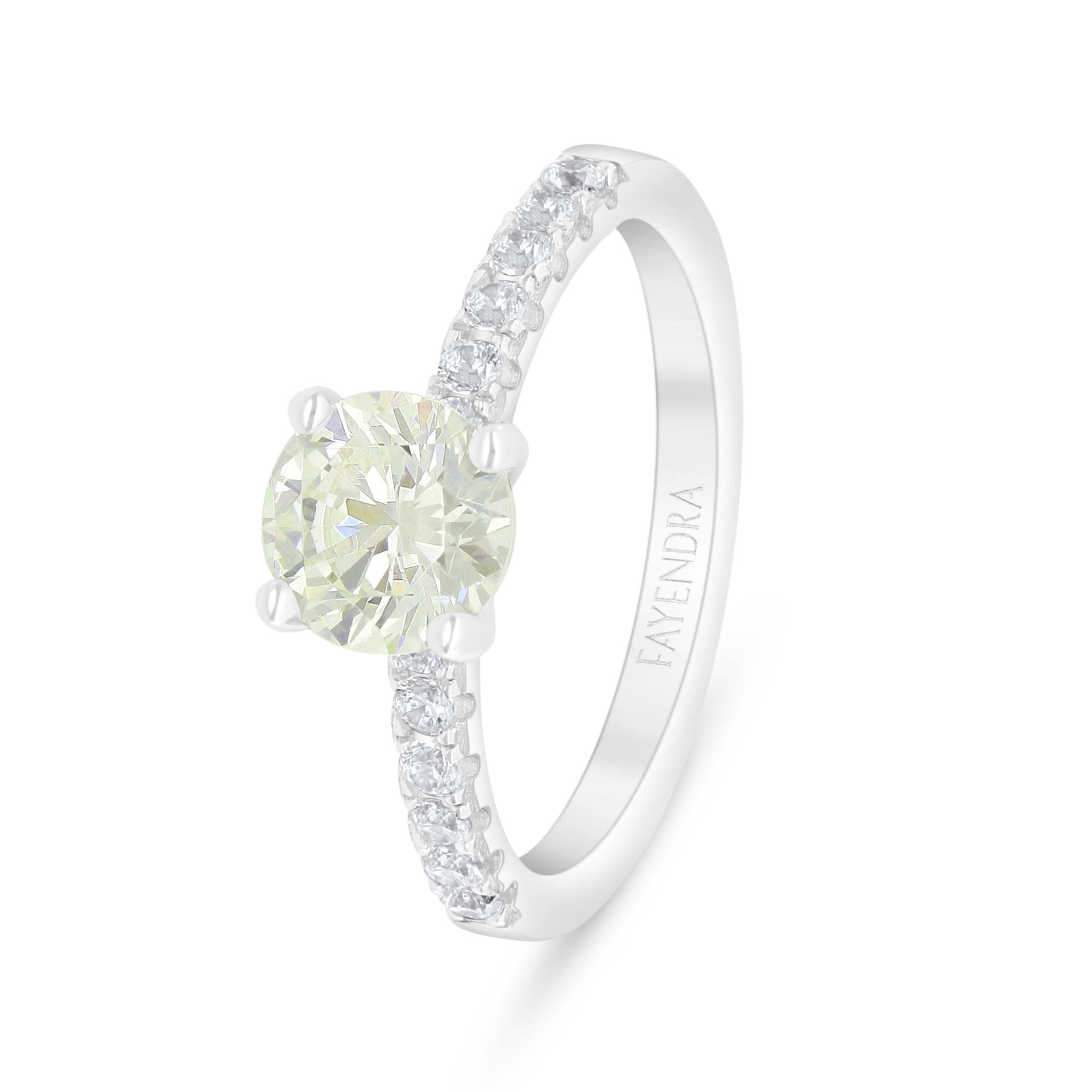 خاتم من الفضة الخالصة عيار 925 مطلي روديوم مرصع بالزركون الكناري الالماسي و فص ابيض