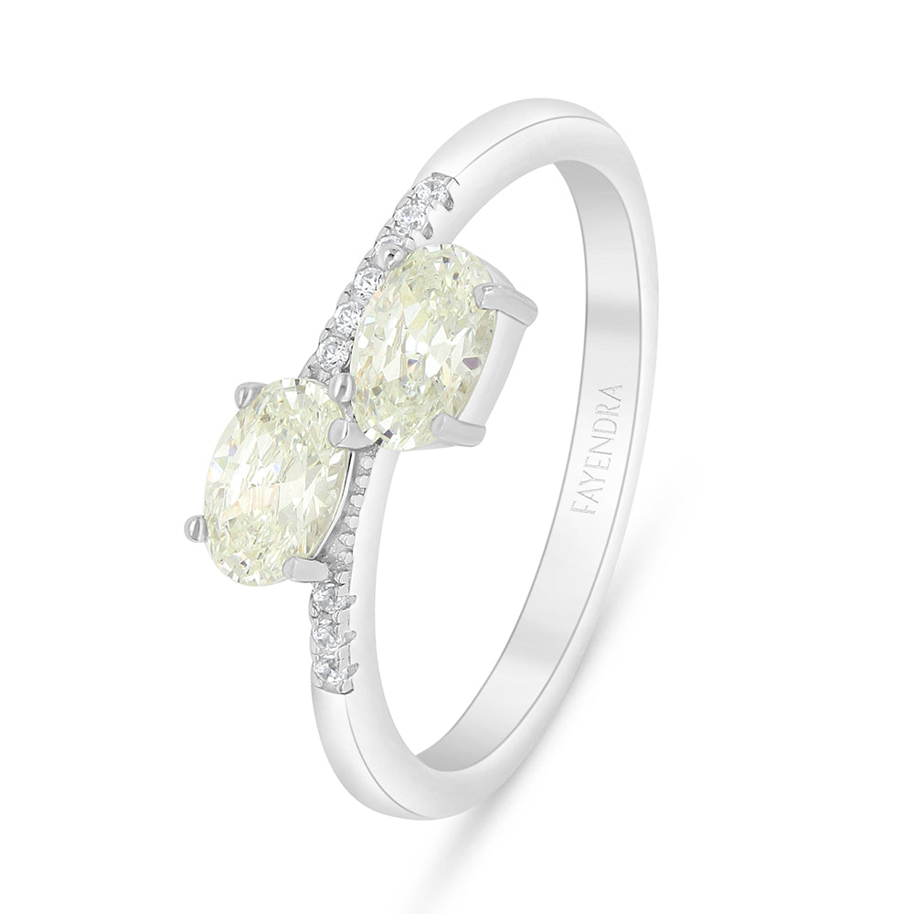 خاتم من الفضة الخالصة عيار 925 مطلي روديوم مرصع بالزركون الكناري الالماسي و فص ابيض