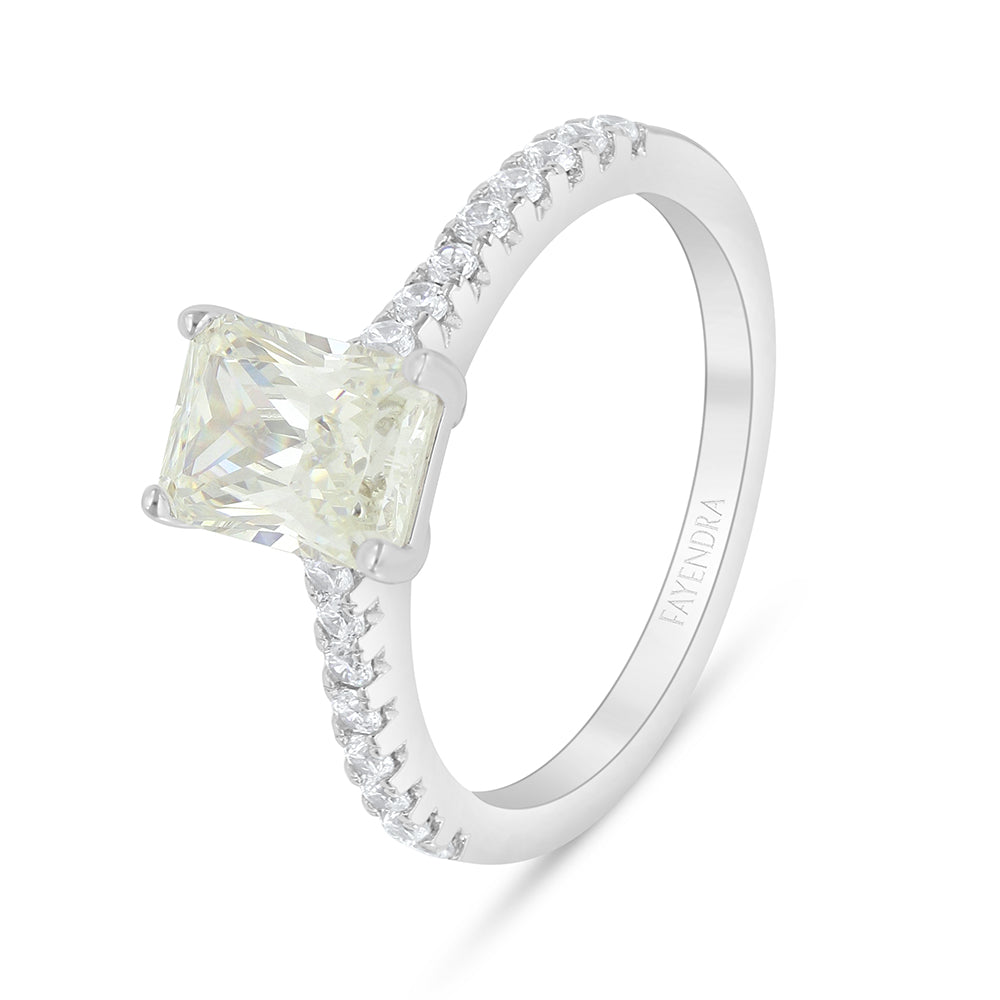 خاتم من الفضة الخالصة عيار 925 مطلي روديوم مرصع بالزركون الكناري الالماسي و فص ابيض
