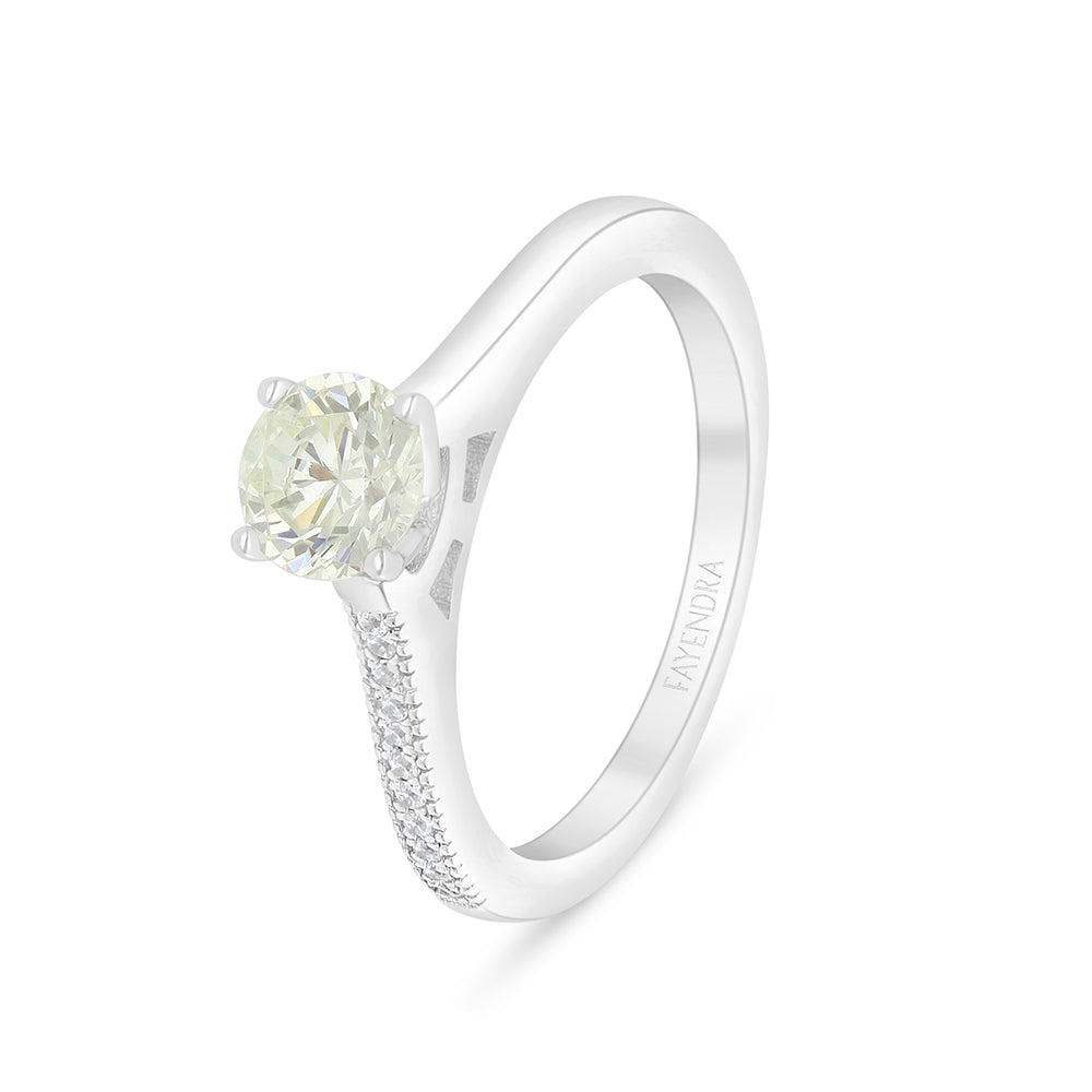 خاتم من الفضة الخالصة عيار 925 مطلي روديوم مرصع بالزركون الكناري الالماسي و فص ابيض