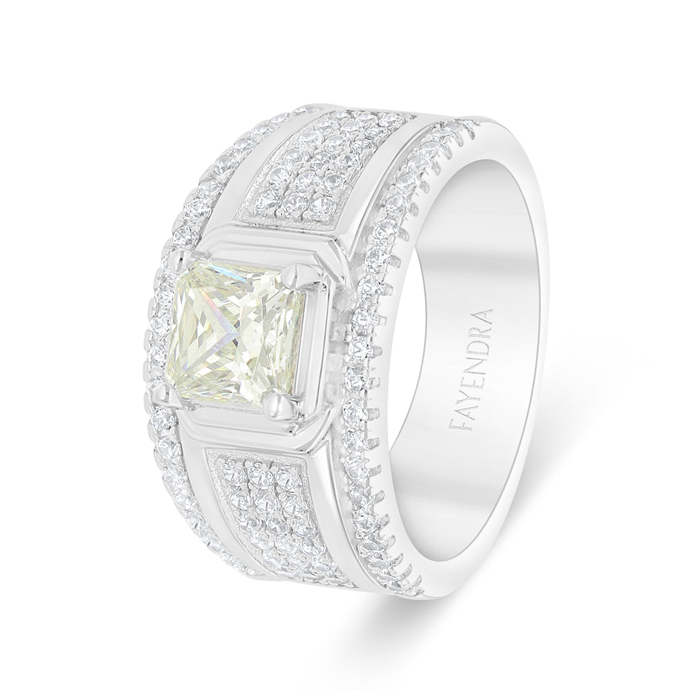 خاتم من الفضة الخالصة عيار 925 مطلي روديوم مرصع بالزركون الكناري الالماسي و فص ابيض