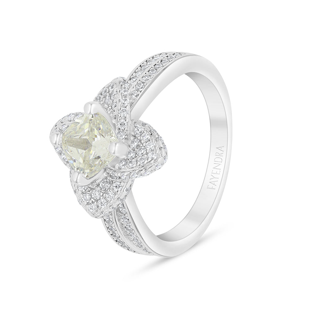 خاتم من الفضة الخالصة عيار 925 مطلي روديوم مرصع بالزركون الكناري الالماسي و فص ابيض