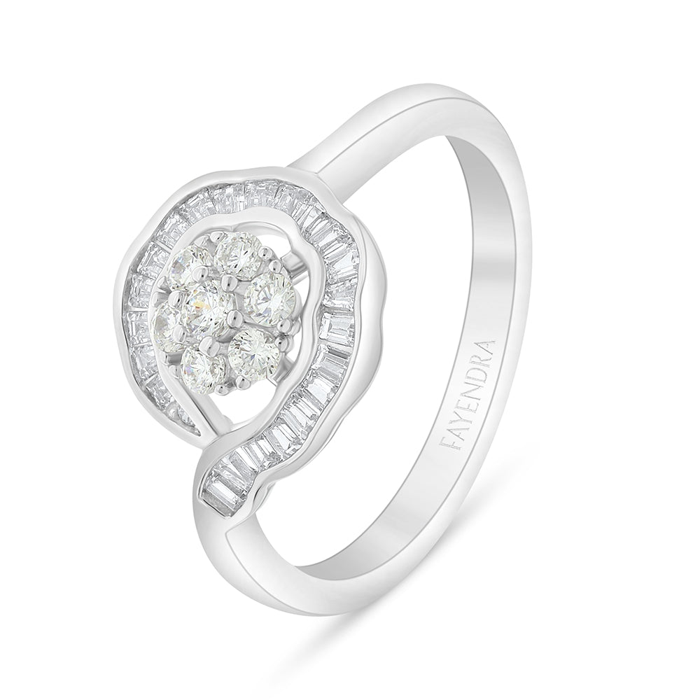 Total Weight: 2.7g تألّقي بإطلالة تخطف القلوب مع هذا الخاتم الاستثنائي من فايندرا، حيث يلتقي التصميم العصري برونق الفخامة. مصنوع بإتقان من الفضة الخالصة عيار 925 ومُغطى بطبقة روديوم فاخرة تحافظ على بريقه الخاطف ومقاومته المثالية للتأكسد، ليبقى متألقًا معك في كل مناسبة. في قلب هذا التصميم الفريد، تتلألأ أحجار الزركون الكناري الألماسي بتوزيع دقيق يُحاكي بريق النجوم، مصقولة ببراعة بقصّة مستديرة تفيض إشراقًا وصفاءً. ويحتضن هذا البريق الساحر إطار متموّج وراقٍ، مرصّع بأحجار الزركون البيضاء المقطوعة بأسلوب باجيت الهندسي، لتُضفي بُعدًا بصريًا يخطف الأنفاس من كل زاوية. تناسق الأحجار ولمعة الروديوم وانحناءات التصميم تجعل من هذا الخاتم تحفة فنية تنبض بالرقي، وتمنحك لمسة أنثوية آسرة تعكس ذوقك الرفيع وشخصيتك المتألقة. اقتنيه الآن، ودعي لمستك الراقية تحكي قصّة أناقة لا تُنسى!