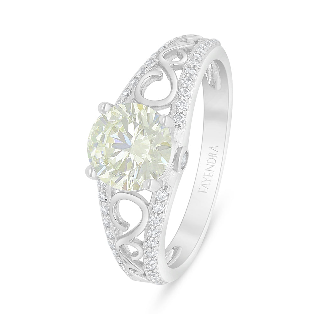 خاتم من الفضة الخالصة عيار 925 مطلي روديوم مرصع بالزركون الكناري الالماسي و فص ابيض