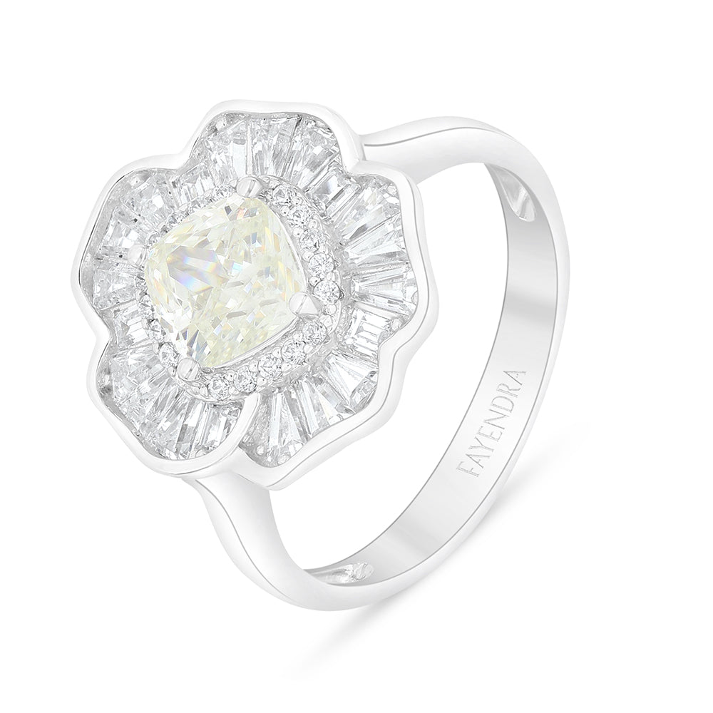 خاتم من الفضة الخالصة عيار 925 مطلي روديوم مرصع بالزركون الكناري الالماسي و فص ابيض