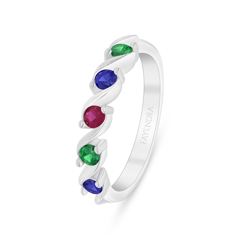 خاتم من الفضة الخالصة عيار 925 مطلي روديوم مرصع زركون ملون