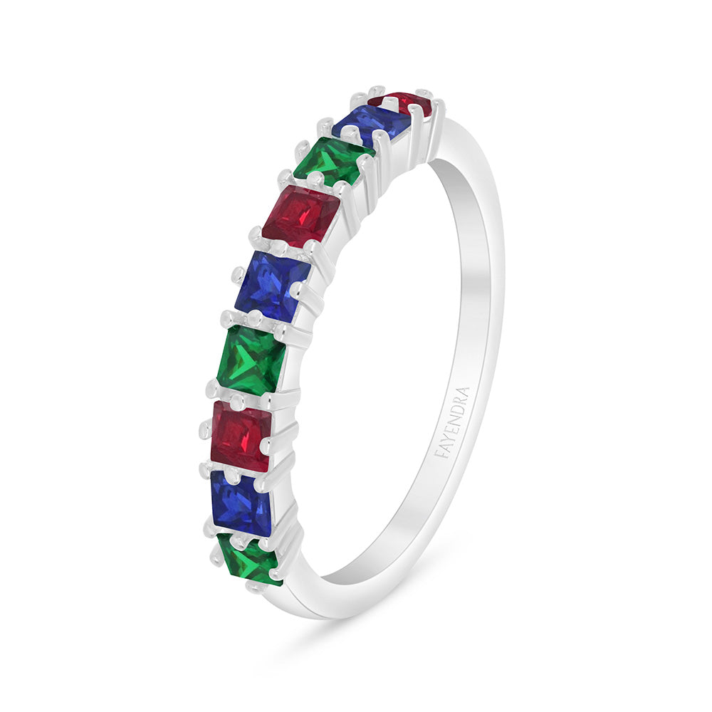 خاتم من الفضة الخالصة عيار 925 مطلي روديوم مرصع زركون ملون